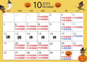 8月の代務医師の診療スケジュールです。院長は毎日診療しております。院長と代務医師の2診体制で診療を行います。医師のご希望のある方は受付にてその旨お伝えください。