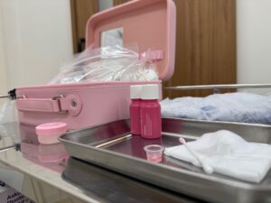 施術後は、下着で擦れてしますので、ワセリンを塗布してガーゼをあてます。
