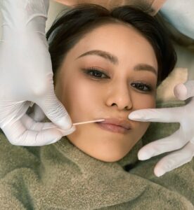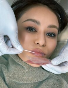 薬剤を唇に塗っていきます