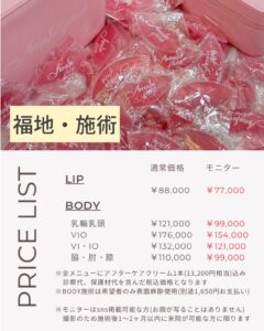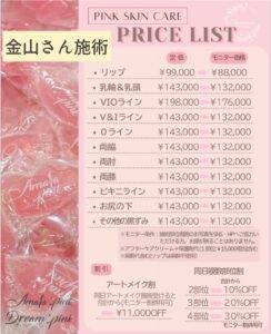 💎福地施術のピンクケア料金表です