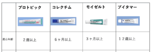プロトピック軟膏、モイゼルト軟膏、コレクチム軟膏があります。