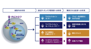 ブイタマークリームにより、Th2サイトカイン・Th17サイトカインの産生が抑制され、アトピー性皮膚炎や乾癬の症状が改善するのですが、時にお薬の効果が出過ぎて、かぶれのような症状や毛包炎などが起きてしまうことがあります。