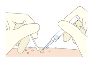 - 塗り方:個々の水いぼを覆うように薄く塗ります。塗った後は、乾燥するまで(約10分程度)衣服などが触れないようにします。
