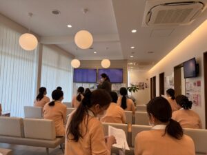 最後に、全体ミーティングで、日々の業務改善点を話し合いました。