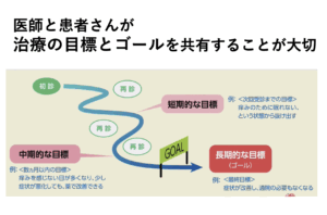 ただ、よくなってくると自己判断で中止してしまう方もいらっしゃいますが、どの段階になったら終了できるのか、どの状態を目指せばいいのか、医師が明確にその寛解の基準を持っておき、患者さまに伝えておく必要があります。
