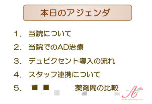 まず、当院でのアトピー性皮膚炎治療をどのように行なっているかご紹介しました。