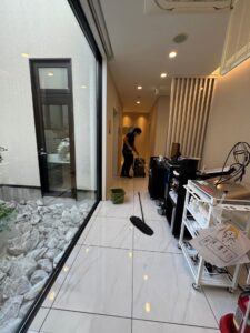 美容エリアも機械を全部出して隅から隅まで。