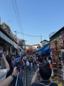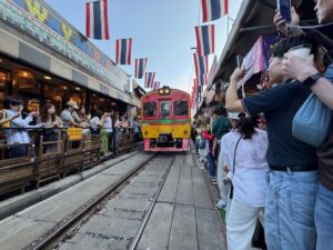 線路ギリギリに露店が所狭しと並ぶローカルな雰囲気の場所です。