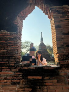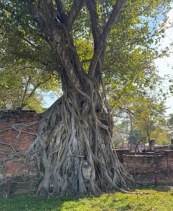 アユタヤ王朝時代の戦争によってビルマ軍により仏像が壊され放置された仏頭が、自然に木に取り込まれたという経緯を聞き、その神秘さを感じました