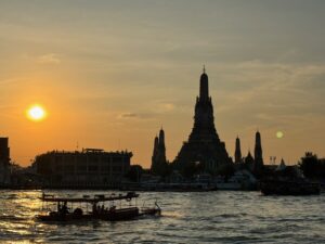 お店はチャオプラヤ川の川沿いにあり、対岸にワットアルンと夕陽が見えて、絶景でした💎