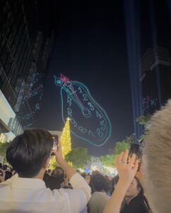 ドローンショーでカウントダウンした後に、花火が上がり、お祭り気分🎵