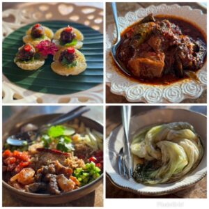 左下の紫のお花のようなものが色が鮮やかすぎでお味はちょっとどうだろうと思ってしまったのですが、鶏肉の詰め餃子のようなもので、けっこう美味しかったです😋