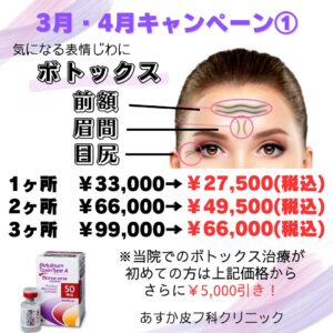 そして、3月、4月のキャンペーンで、ボトックスがとてもお得です‼️