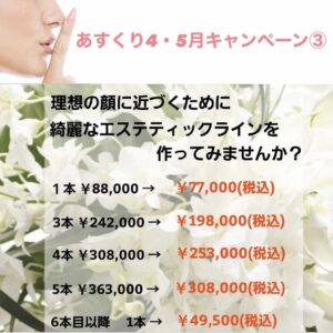 5周年記念キャンペーンで、4月、5月はヒアルロン酸注入がお得になります‼️